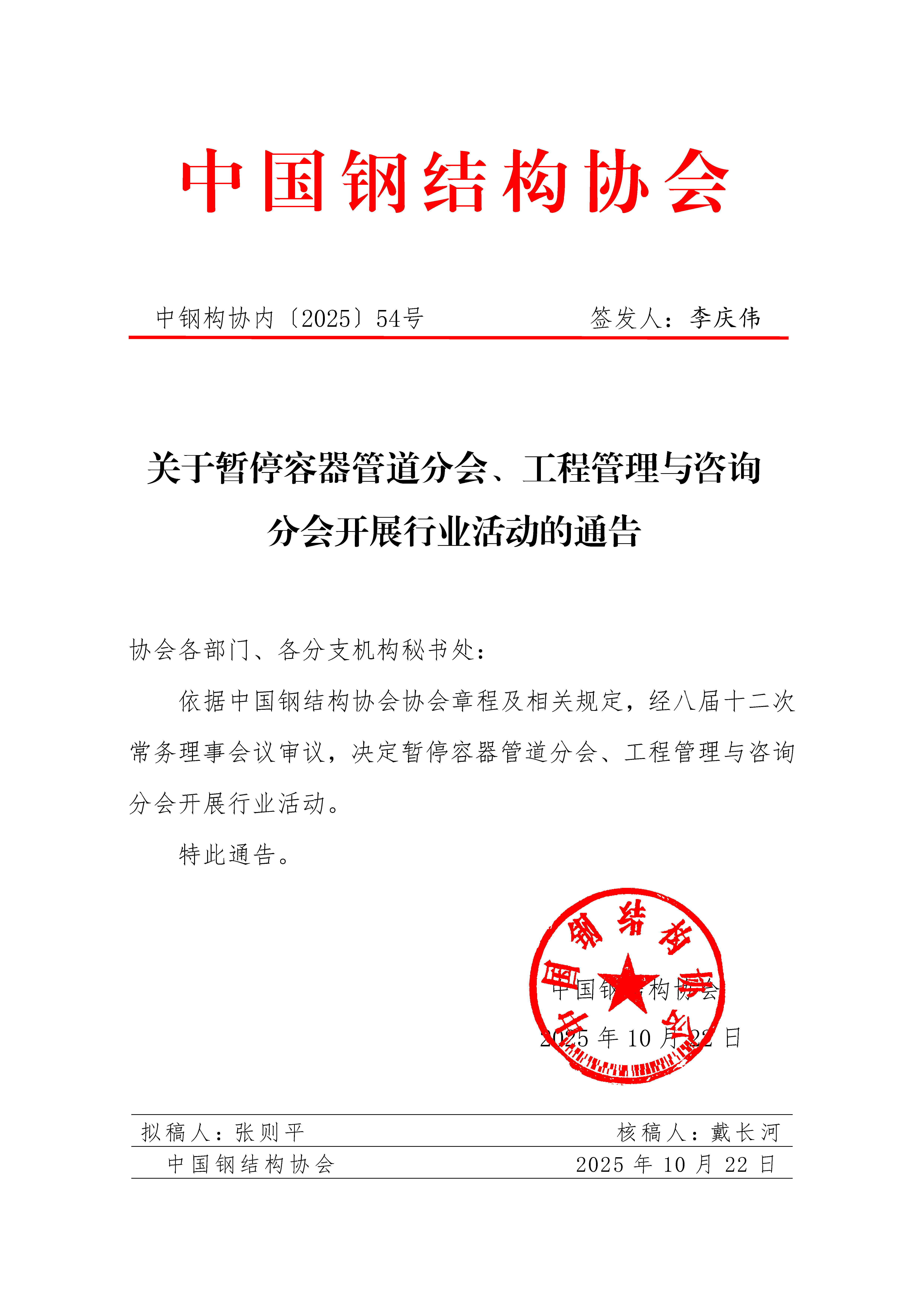 關于暫停容器管道分會、工程管理與咨詢分會開展行業活動的通告